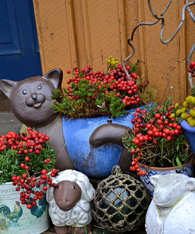 og jeg ble innspirert til litt høstsanking av farger til å pynte opp ute.