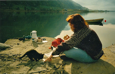 Og i studietiden kunne man rett og slett finne på å ta med katta si på kaffetur i fjæra.